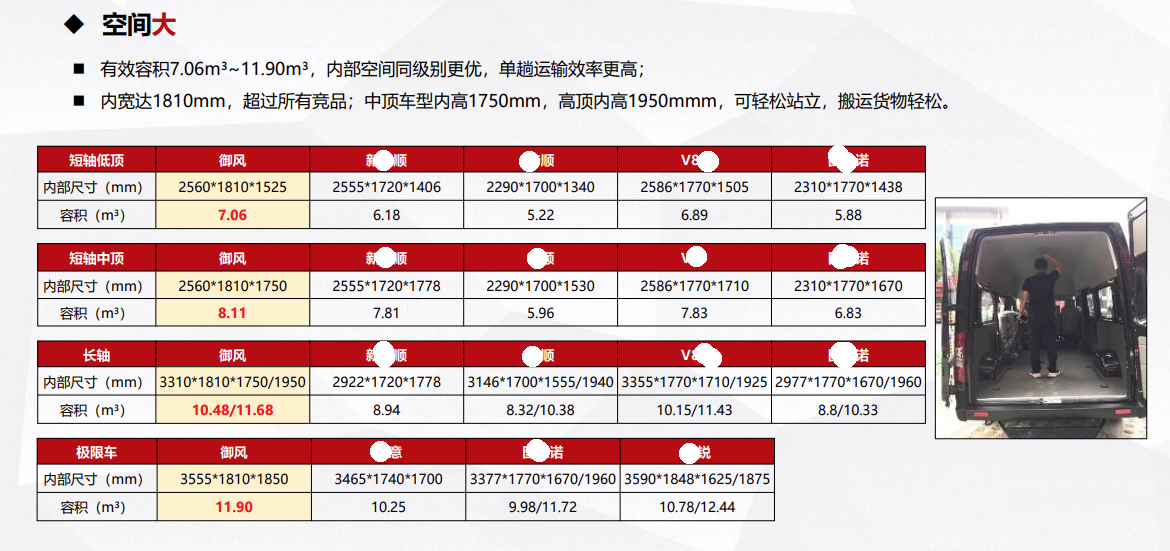 ◆載貨空間覆蓋7.06m3~~11.9m33;內(nèi)部空間均為同級(jí)別2ui大,車型豐富;