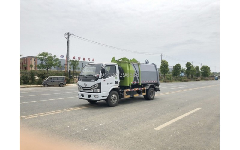 裝料裝置:自動提升裝料裝置設(shè)在廂體的前部右側(cè)面,由支架、鏈條機構(gòu)、掛鉤等組成。使用此裝置可將垃圾桶內(nèi)的垃圾自動提升裝入廂體內(nèi)。