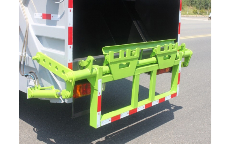4.翻轉(zhuǎn)機(jī)構(gòu):選裝帶垃圾筒(或斗)的翻轉(zhuǎn)機(jī)構(gòu),吊裝多容量的垃圾桶,可配套使用全國鐵制掛桶或塑料掛筒,強(qiáng)力裝填,把垃圾擠入車廂并壓實(shí)和推卸。