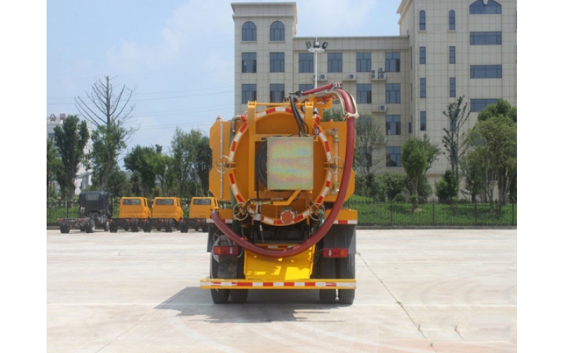 整車外觀大氣,總裝精密。污水罐和清水罐尾部都裝有量管,方便掌握罐內(nèi)情況;尾部裝有電控制自動伸縮高壓水管,帶自動清洗水管裝置;高壓卷盤安裝在罐體尾部,方便高壓清洗使用;罐體尾部不但有不銹鋼排污閥可以排污,而且尾門也可液壓開啟,使排污更徹底;尾門與罐體連接處安裝有密封膠條,密封嚴實保障罐體內(nèi)的真空度;罐體頂部安裝有吊桿,電控伸縮旋轉(zhuǎn),可270度旋轉(zhuǎn),方便吸污工作。